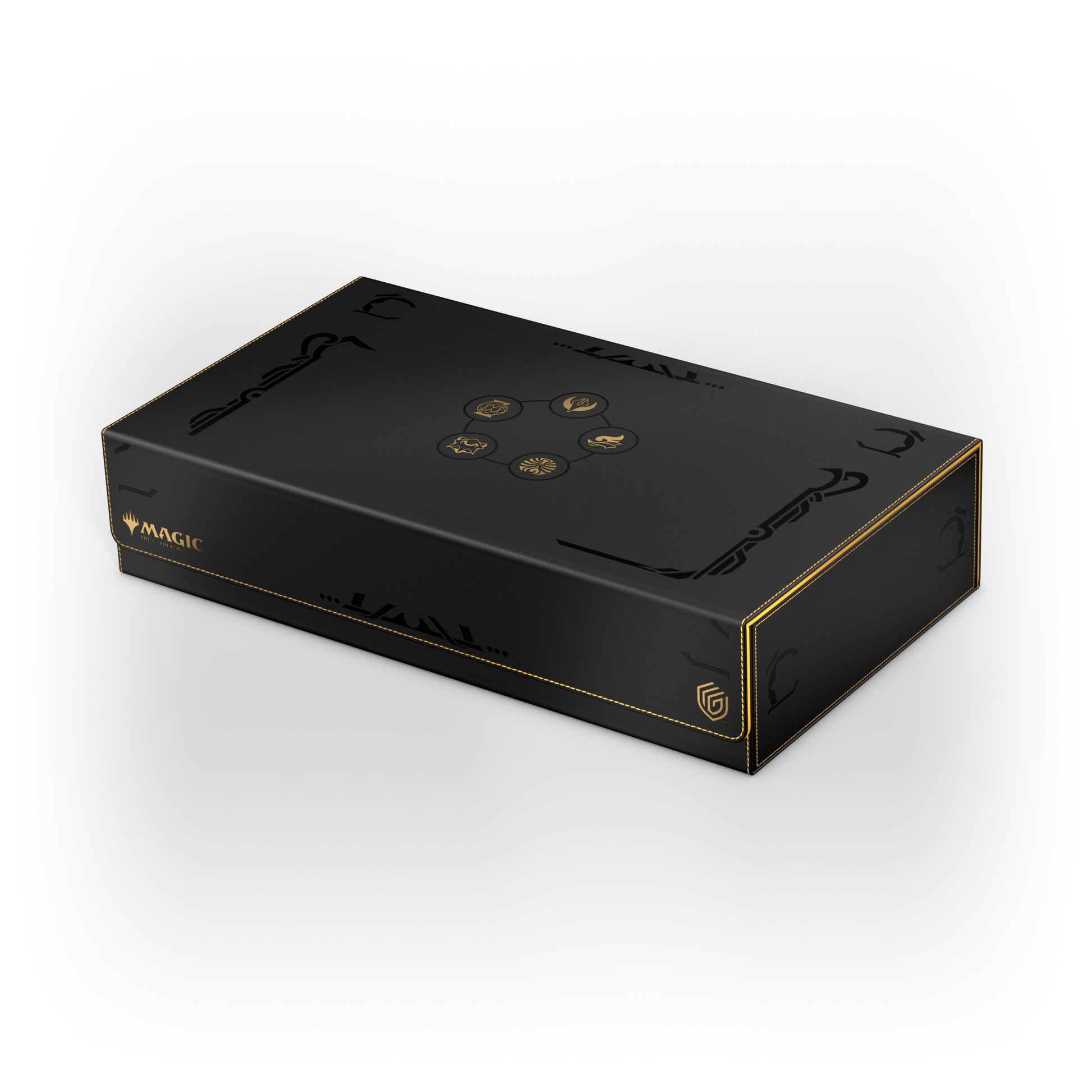 Ultimate Guard's Omnihive 1000+ Xenoskin with officially licensed artwork from Magic: The Gathering's "Secrets of Strixhaven" set is the ultimate Magic mass storage box for decks, cards, and accessories. Designed to hold multiple MTG deck boxes and/or play-mats simultaneously, it features two flexibly positionable and stackable magnetic dice trays over two compartments, durable Xenoskin material, high-quality microfiber inner lining, a strong magnetic closure and Ultimate Guard's trusted ZnapClaw mechanism. With capacity for eight Sidewinder 100+ or six Sidewinder 133+ deck boxes, the Omnihive 1000+ Xenoskin also holds up to 1000 double-sleeved cards in Ultimate Guard sleeves*, making it the perfect storage box for a cube.